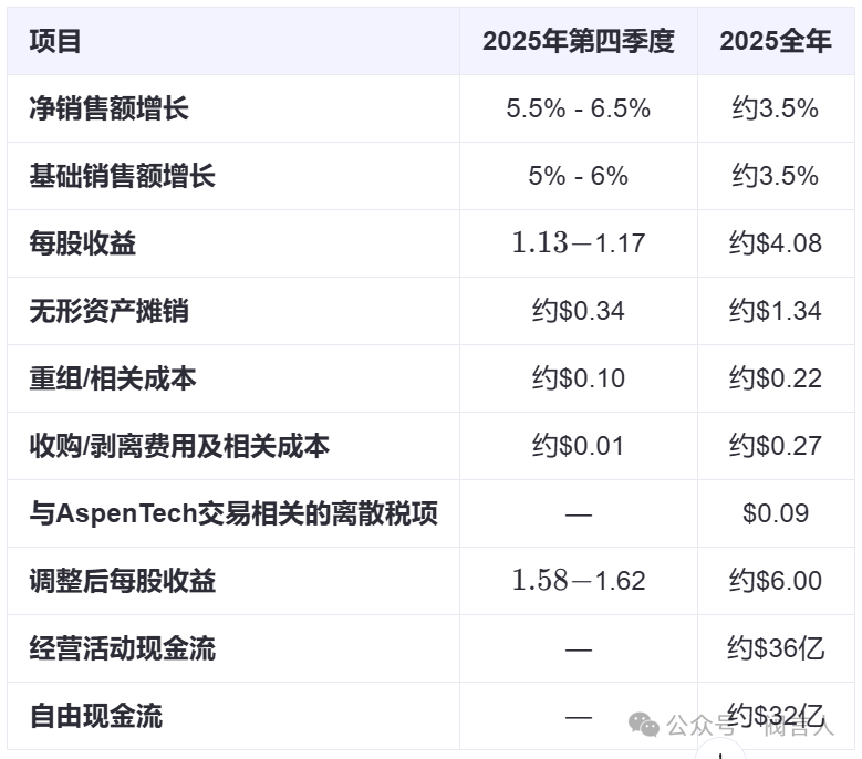 2025年展望下表總結了2025財年的指導框架。凈銷售額和基礎銷售額約3.5%的增長指引反映了艾默生集團對定價策略的最新預期,因關稅成本影響已有所降低。