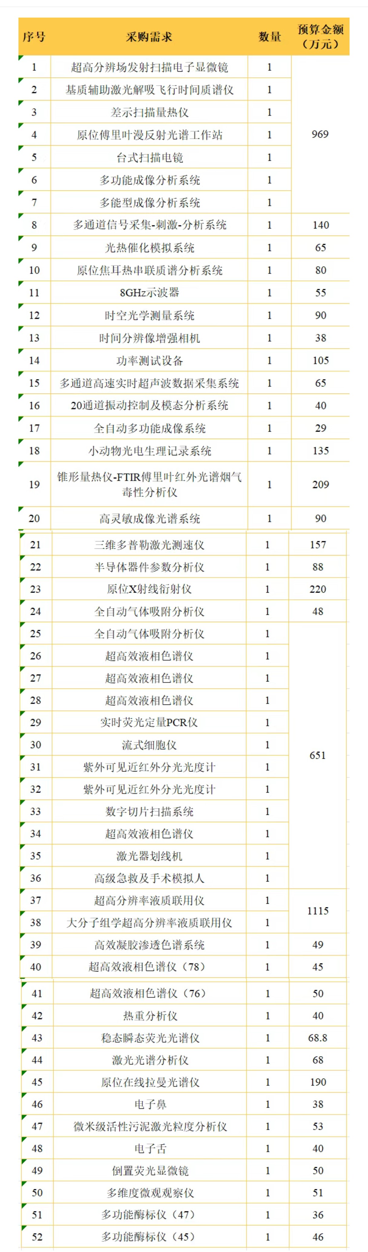 近日,河北大學發布了多個重大教學科研設備儀器更新項目公開招標,針對進口設備。百科網對其進行了初步整理,共計5213.8萬元采購預算,計劃采購拉曼光譜儀、流式細胞儀、超高效液相色譜儀在內的52臺/套設備,詳情如下: