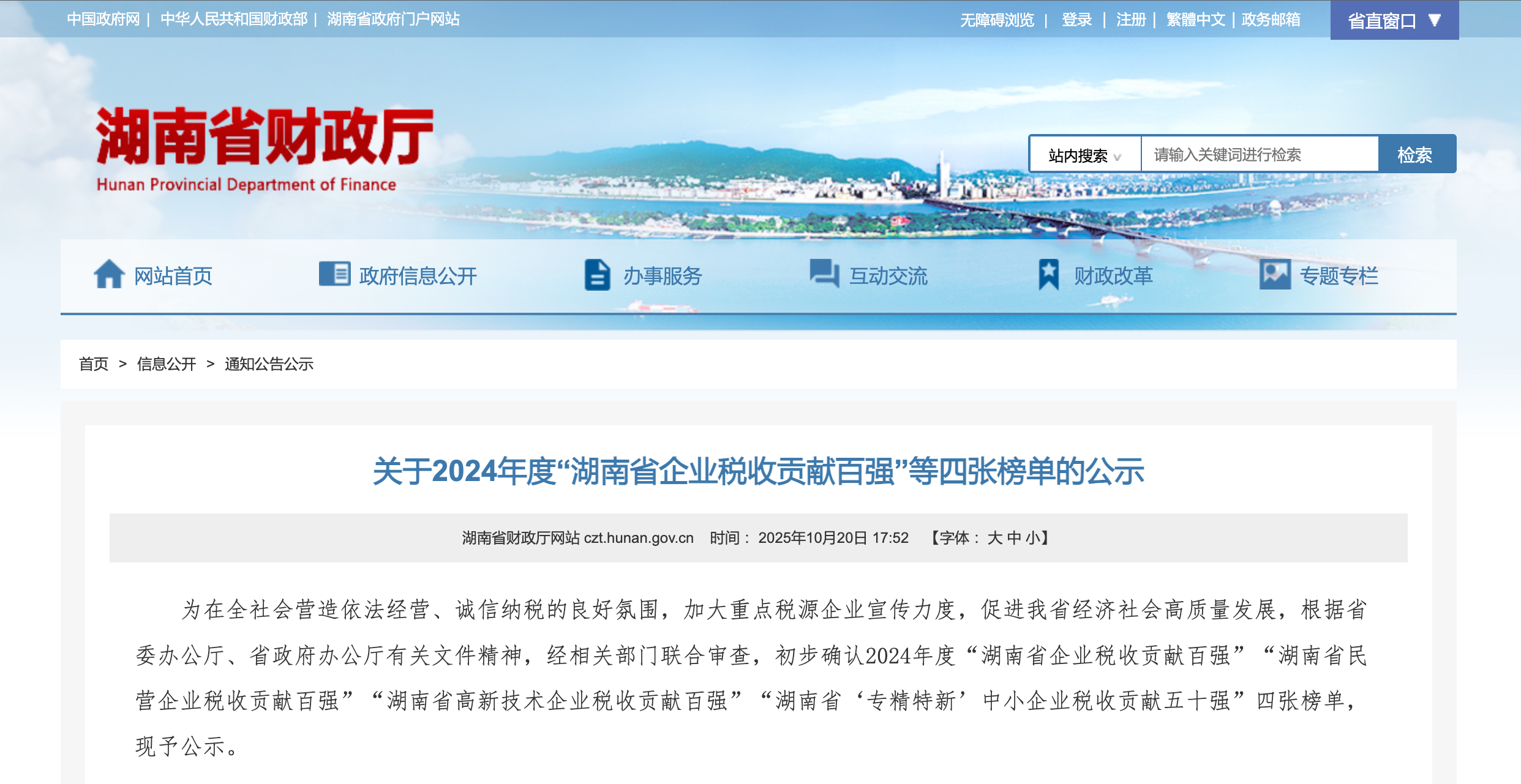近日,湖南省財政廳發(fā)布了2024年度“湖南省企業(yè)稅收貢獻百強”等四張榜單,威勝集團榮登“湖南省高新技術(shù)企業(yè)稅收貢獻百強”榜單。