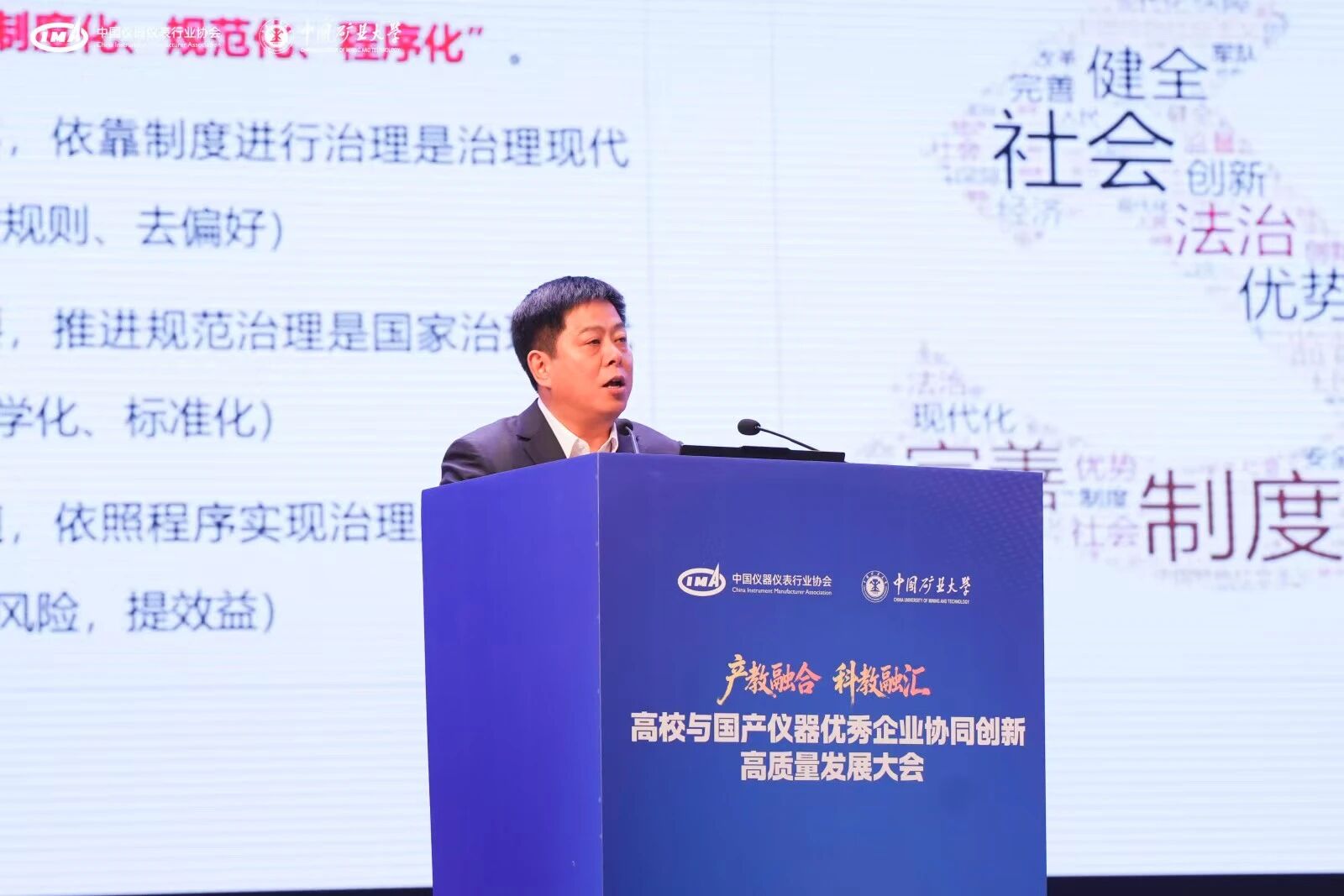 開幕式上,協會理事長吳朋、礦大校長趙宏偉、江蘇省科技資源統籌服務中心秘書長張徐祥先后發表了熱情洋溢的致辭。他們高度評價了國產儀器儀表在科技自立自強戰略中的重要地位,并對大會的召開表示熱烈祝賀,同時寄語與會者攜手共進,共同譜寫國產儀器儀表產業高質量發展的新篇章。礦大副校長王忠賓及協會秘書長李躍光主持了本次會議。