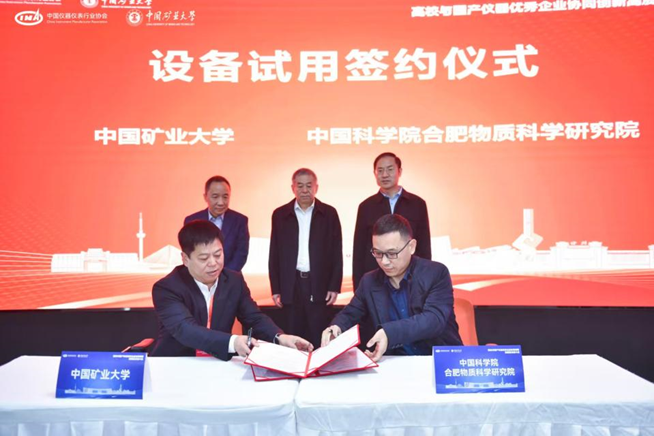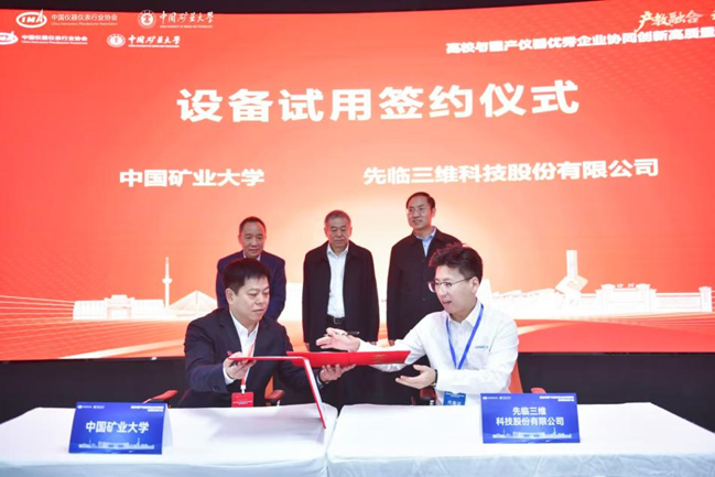 此次活動促成了寧波永新光學股份有限公司,先臨三維科技股份有限公司、成都玖錦科技有限公司、中國科學院合肥物資科學研究院4家企業與礦大簽訂設備試用協議。工信部裝備工業一司原一級巡視員苗長興、協會秘書長李躍光、礦大副書記李江濤共同見簽,礦大實驗室與設備管理處處長吳祝武代表礦大與企業簽約,通過此次設備試用協議的簽訂及合作平臺的搭建,開啟了校企儀器應用與技術合作的嶄新篇章,為國產儀器的市場化應用注入了新的動力。