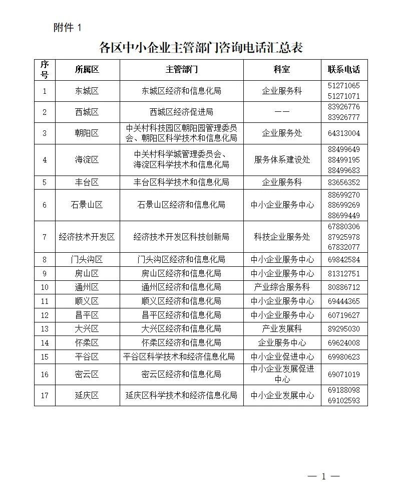 1.各區中小企業主管部門咨詢電話匯總表