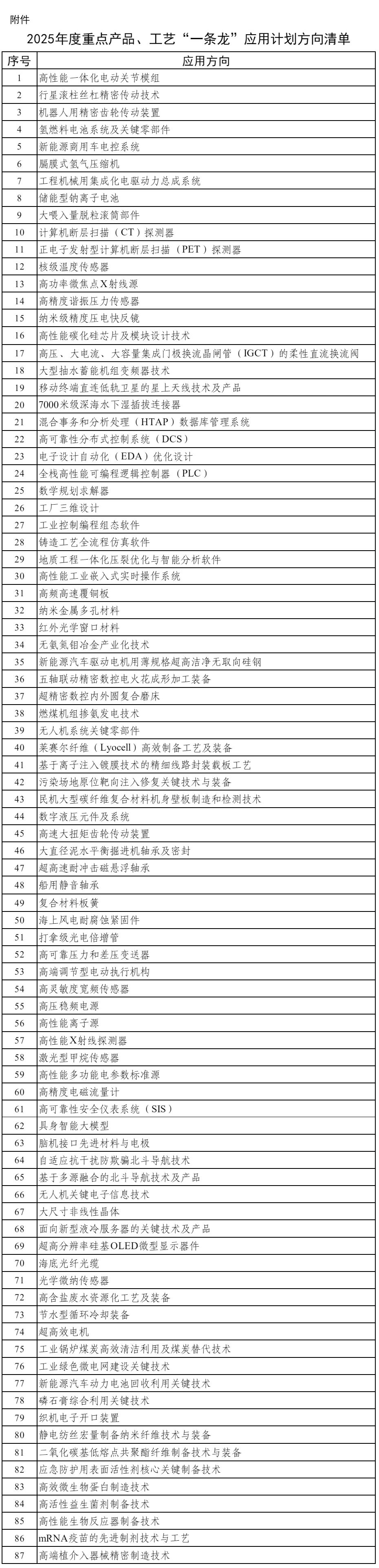 附件:2025年度重點產(chǎn)品、工藝“一條龍”應(yīng)用計劃方向清單