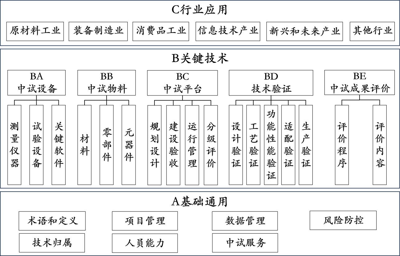 圖1 制造業(yè)中試標(biāo)準(zhǔn)體系結(jié)構(gòu)圖