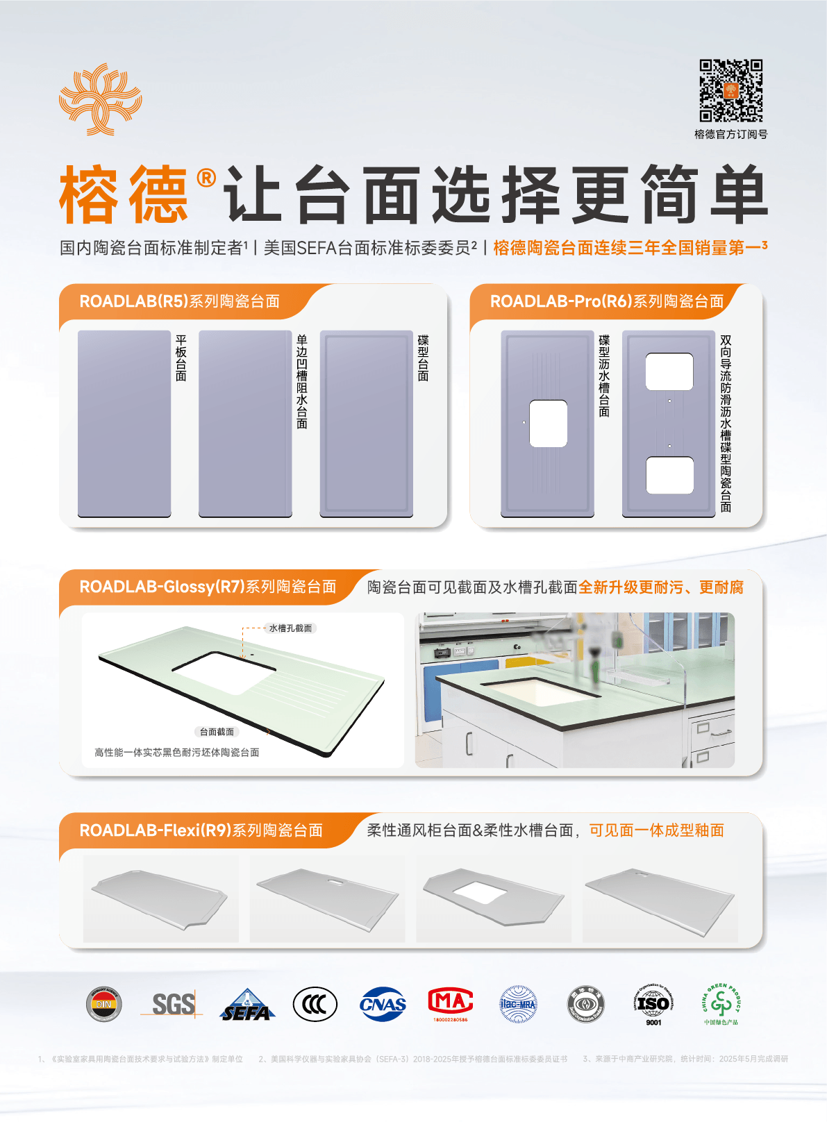 2014年,榕德作為中國行業代表躋身SEFA標準委員會,多年來積極參與全球實驗室陶瓷臺面標準的制定與修訂,以長期主義精神持續推動行業進步。不斷沉淀技術、打磨產品,將每一個項目視為對品質的堅守,每一次創新視為對未來的投資。作為中國實驗室陶瓷臺面團體標準的起草單位,榕德既踐行國際標準,更引領行業升級,累計為全球32800余家用戶提供標準化、定制化解決方案,足跡遍布教育、科研、生物醫藥等諸多領域。