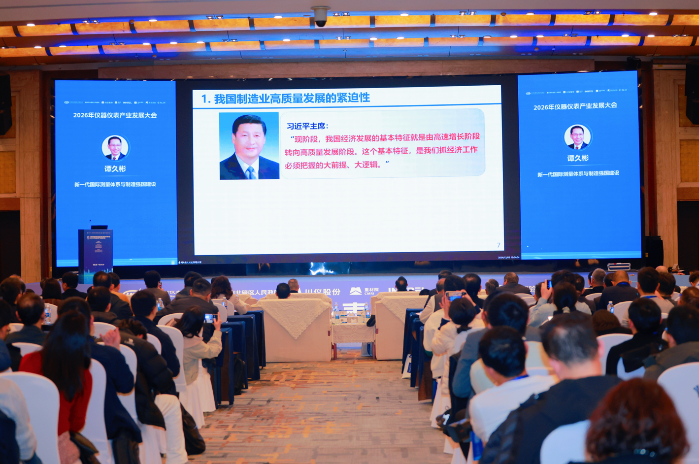 中國工程院院士譚久彬以 “新一代國家測量體系與制造強(qiáng)國建設(shè)” 為題通過視頻方式為現(xiàn)場來賓作專題報(bào)告。他從發(fā)達(dá)國家制造業(yè)高質(zhì)量發(fā)展的底層邏輯切入,闡釋精密測量與儀器的基礎(chǔ)性、先導(dǎo)性作用;從整體性、碎片化、精益化問題出發(fā),揭示建設(shè)新一代國家測量體系的必要性與緊迫性;同時(shí)為建設(shè)新一代國家測量體系與儀器產(chǎn)業(yè)體系提出可行性方案,剖析質(zhì)量強(qiáng)國建設(shè)背景下高端儀器儀表領(lǐng)域面臨的重大變革與發(fā)展機(jī)遇。