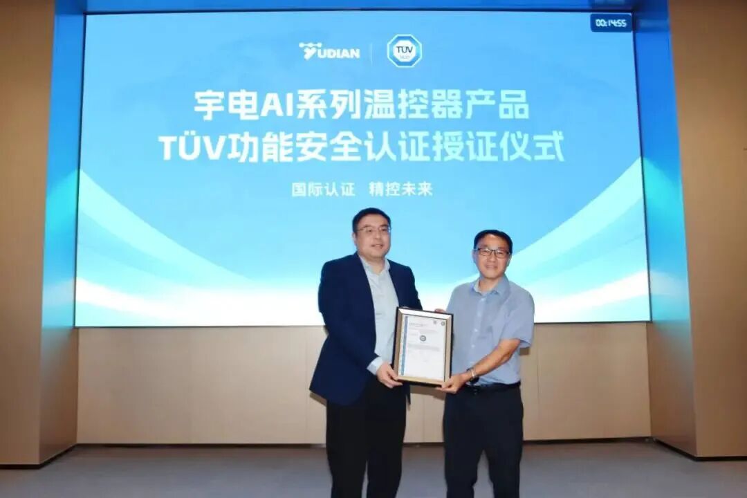 4月15日,宇電溫控科技AI系列溫控器TÜV南德功能安全認證授證儀式,在宇電廈門翔安產(chǎn)業(yè)園圓滿舉辦,TÜV南德意志集團(以下簡稱“TÜV南德”)正式為宇電AI-85X系列限溫溫控器頒發(fā)功能安全證書,宇電成為國內(nèi)首個通過該認證的國產(chǎn)溫控器品牌。